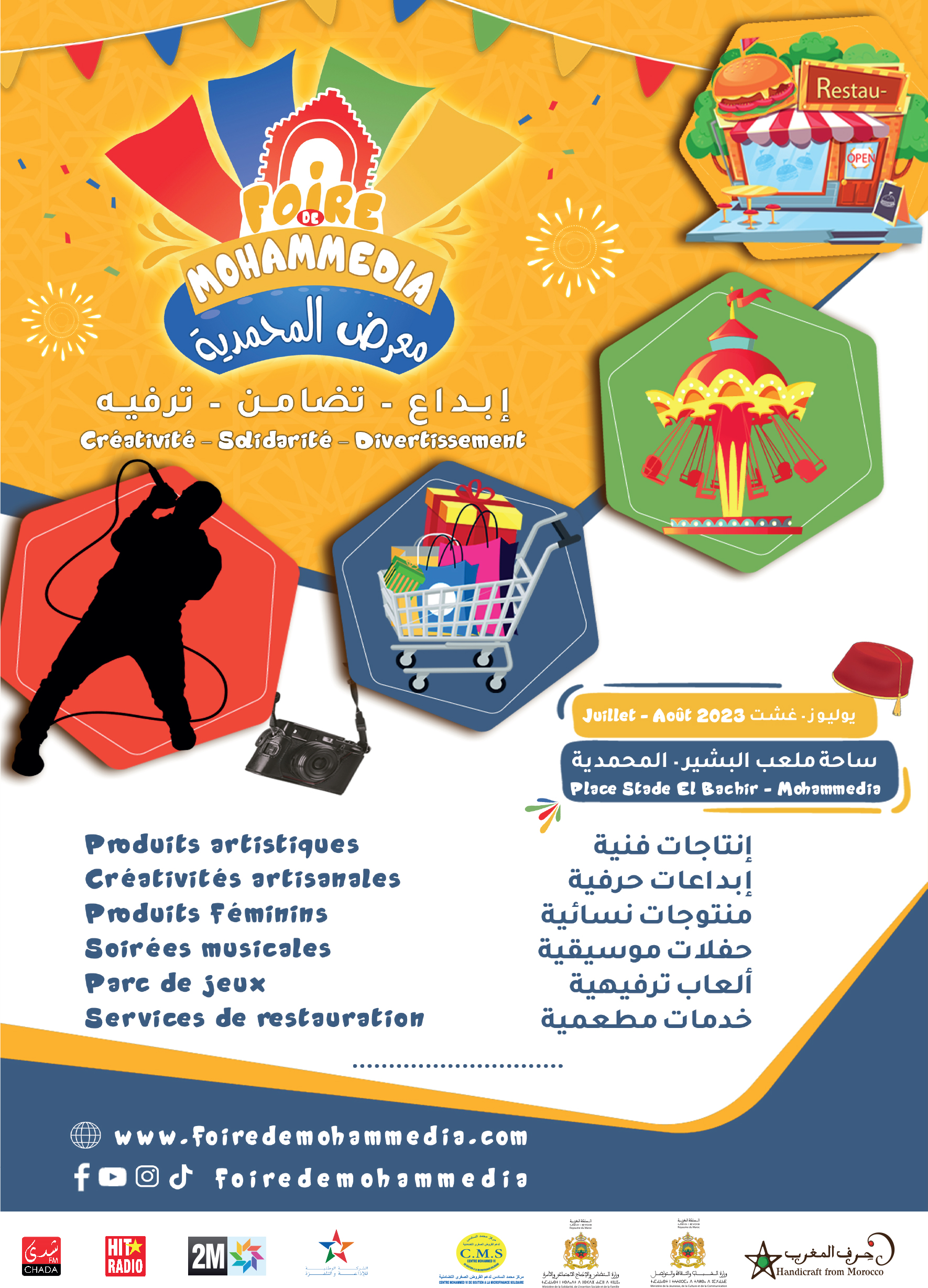 Sous le thème « Créativité, Solidarité et Divertissement », l’Association Arts et Cultures organise la Foire de Mohammedia durant les mois de Juillet et Août 2023 à Place El Bachir, annoncent les organisateurs dans un communiqué.