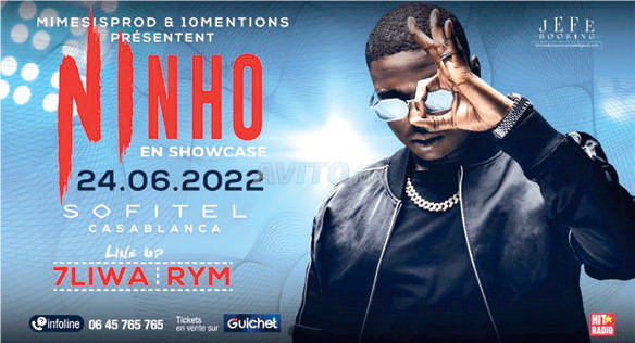 Ninho se produira pour la première fois au Maroc le 24 juin 2022 à Casablanca avec 7liwa et RYM.
