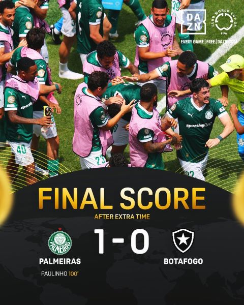 Palmeiras se qualifie pour les quarts de finale après une victoire contre Botafogo, grâce à un but de Paulinho en prolongation.