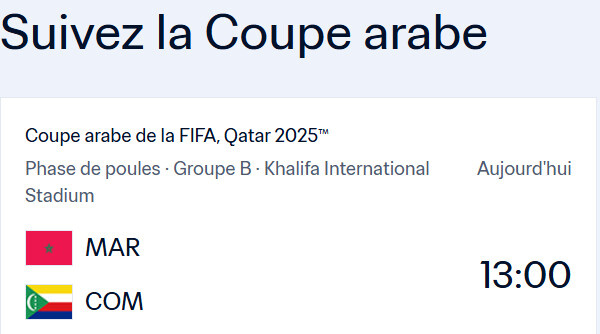 Coupe arabe FIFA 2025 / Ce mardi, Maroc – Comores : Horaire ? Chaînes ?